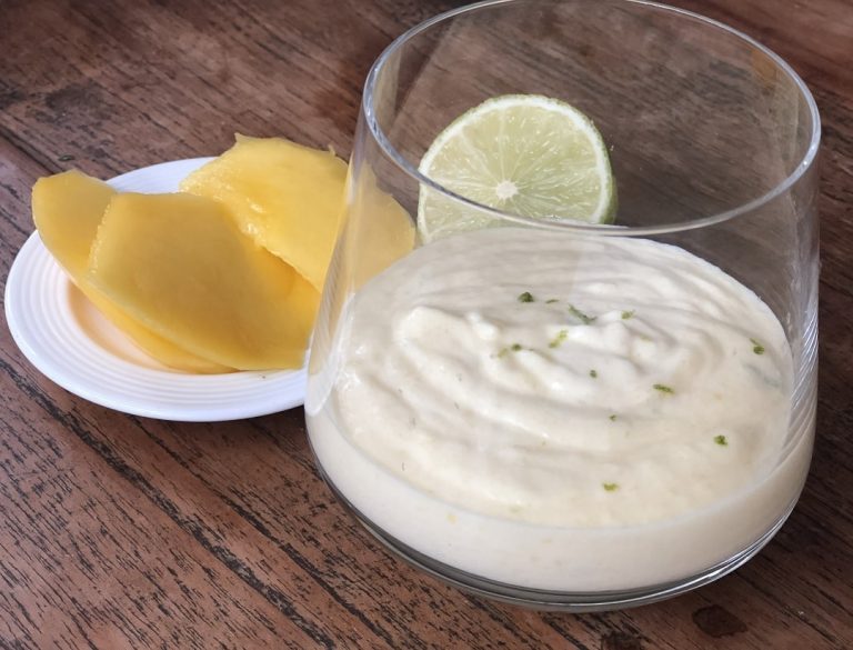 De Thaise mango limoen mousse is heerlijk als toetje na een Aziatische maaltijd. Wij aten hem laatst toe na heerlijke Thaise mie met kip en rode curry. Omdat het een toetje op basis van yoghurt en room is past het ook bij andere keukens als Italiaans of Nederlands. Het is eigenlijk altijd lekker!